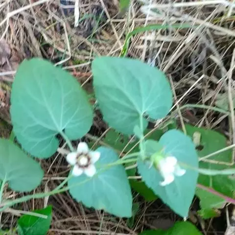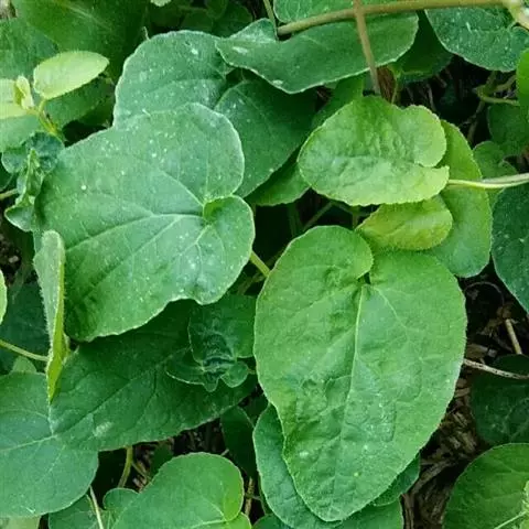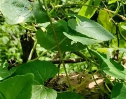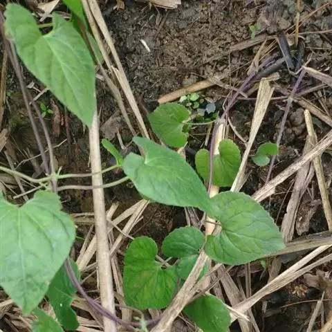 茎缠绕长约1-2米,直径2-4毫米,有多数分枝,侧枝15-50厘米,小枝1-5厘米,具叶,不育或先端着花,黄绿色或黄白色,无毛。叶在主茎及侧枝上的互生,在小枝上的近于对生,叶柄长0.5-2.5厘米,有疏短刺毛,叶片卵形或狭卵形,长1-6.5厘米,宽0.8-5厘米,端钝或微尖,基部近于心形,边缘具波状钝锯齿,分枝上叶片渐趋狭窄,叶基圆形或楔形,上面绿色,下面灰绿色,两面疏或密地被贴伏的长硬毛或柔毛,少为无毛。