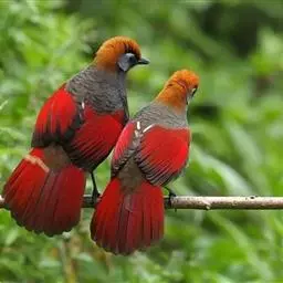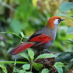 赤尾噪鹛中型鸟类,体长24~28厘米。头顶至后颈红棕色,两翅和尾鲜红色,眼先、眉纹、颊、颏和喉黑色,…
