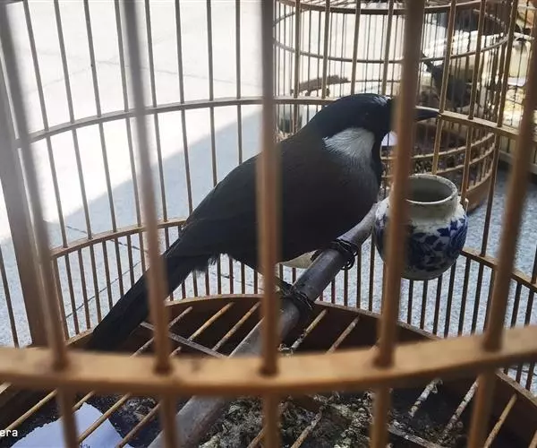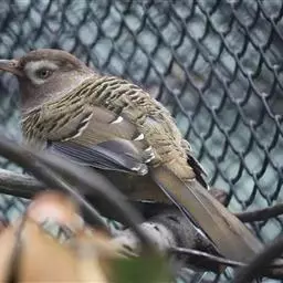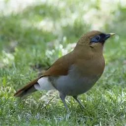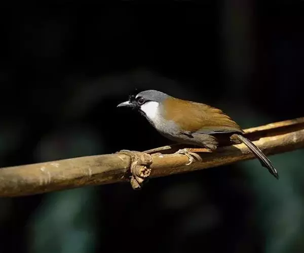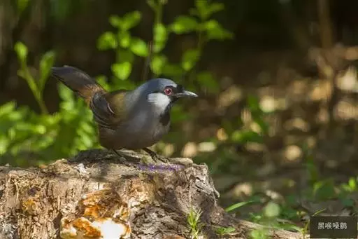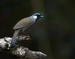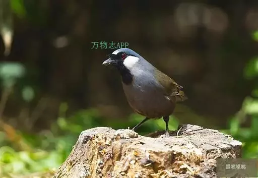 黑喉噪鹛(学名:Garrulax chinensis):共有5个亚种,体长23-29厘米,属中型鸟类。额基、眼先、眼周以及颏和喉黑色,额基黑色上面有一白斑,头顶至后颈灰蓝色,其余上下体羽多为橄榄灰沾绿至棕褐色。