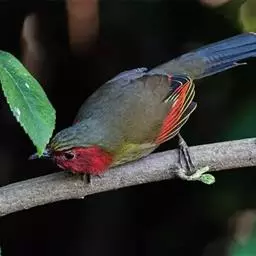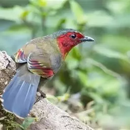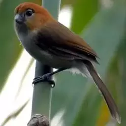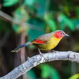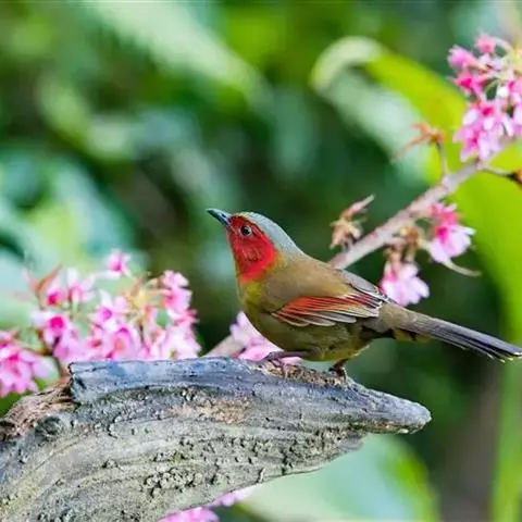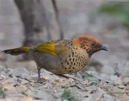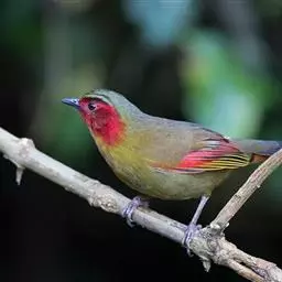 红翅薮鹛是噪眉科、薮鹛属中型鸟类,体长21-24厘米。头顶灰褐色,头侧和颈侧赤红色,上体橄榄褐色,…