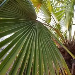 植株粗壮高大,乔木状植物。 一般高13-20米,可高达33米,直径一般45-60厘米,最粗可达90厘米。叶大型,掌状分裂,近圆形,直径达1-1.5米,最宽可达3米,有裂片60-80,裂至中部,线状披针形,渐尖,先端2裂;叶柄粗壮,长约1米,边缘具齿状刺,叶柄顶端延伸为中肋直至叶片的中部。