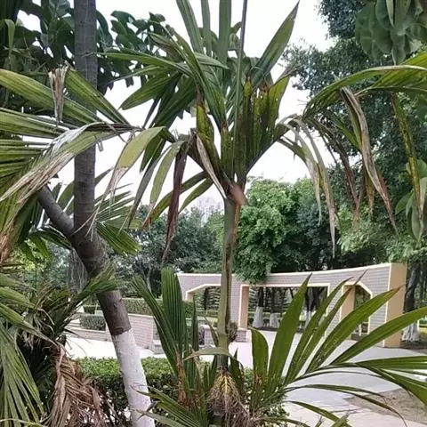 糖棕的羽状叶片常年油绿,巨大而稠密,犹如天然的华盖,遮挡住热带炽热的阳光;又好似一支支绿色的大绿伞,给人们一片凉爽的绿荫,可作庭院成片栽种。