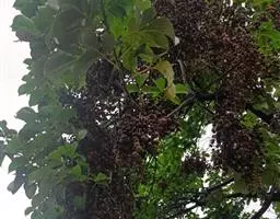 蕊5-8;雌花:花梗长2-3毫米;萼片6,卵形或阔卵形,长约2.5毫米,其中3片较宽,外面被柔毛;子房圆球状,直径约2毫米,被柔毛,5-6室,花柱合生呈近圆锥状,顶端截平。蒴果扁球状,直径8-12毫米,被柔毛,具5-6条纵沟。花果期几乎全年。