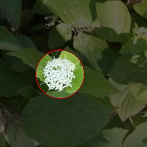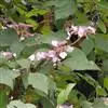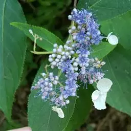 伞房状聚伞花序近球形,直径8-20厘米,具短的总花梗,分枝粗壮,近等长,密被紧贴短柔毛,花密集,多数不育;不育花萼片4,阔物卵形、近圆形或阔卵形,长1.4-2.4厘米,宽1-2.4厘米,粉红色、淡蓝色或白色;孕性花极少数,具2-4毫米长的花梗;萼筒倒圆锥状,长1.5-2毫米,与花梗疏被卷曲短柔毛,萼齿卵状三角形,长约1毫米;花瓣长圆形,长3-3.5毫米;雄蕊10枚,近等长,不突出或稍突出,花药长圆形,长约1毫米;子房大半下位,花柱3,结果时长约1.5毫米,柱头稍扩大,半环状。