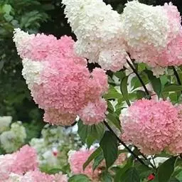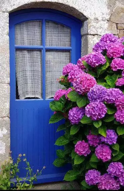 绣球又名草绣球,6月-7月开花。花初开白色,渐转粉红或蓝色,大球形,系由不孕性花组成。众花怒放,如同雪花压树,妩媚动人。它枝叶密展,根肉质,适应性强,既能地栽于家庭院落、天井一角,也宜盆植为美化阳台和窗口增添色彩。