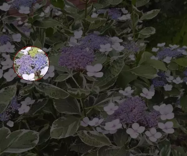 该变种与原变种的主要区别在于,其花序只有少数不育花,多数为孕性花,且花序顶端平,不呈近球状或头状。花期7月。