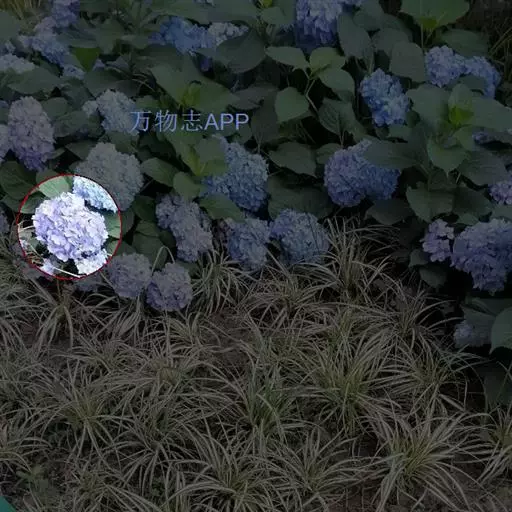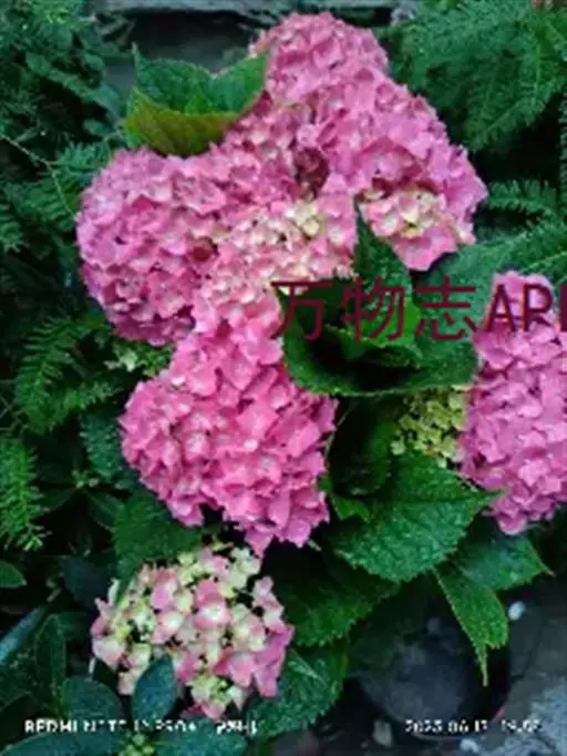 绣球(学名:Hydrangea macrophylla (Thunb.) Ser. ) : 为虎耳草科绣球属植物。灌木,高1-4米;茎常于基部发出多数放射枝而形成一圆形灌丛;枝圆柱形。叶纸质或近革质,倒卵形或阔椭圆形。伞房状聚伞花序近球形,直径8-20厘米,具短的总花梗,花密集,粉红色、淡蓝色或白色;花瓣长圆形,长3-3.5毫米。蒴果未成熟,长陀螺状;种子未熟。花期6-8月。