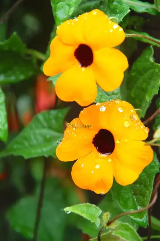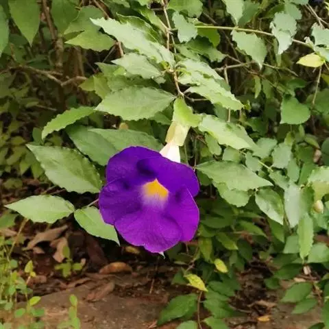翼叶山牵牛(学名:Thunbergia alata Bojer et Sims)是爵床科,山牵牛属缠绕草本植物。茎被倒向柔毛。叶柄具翼,叶片卵状箭头形或卵状稍戟形,先端锐尖,两面被稀疏柔毛间糙硬毛,背面稍密;脉掌状,花单生叶腋,小苞片卵形,先端急尖或渐尖,钝,萼大小齿;冠檐裂片倒卵形,冠檐黄色,喉蓝紫色;花丝无毛,子房及花柱无毛;果实被开展柔毛。