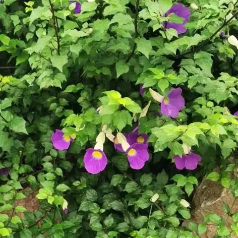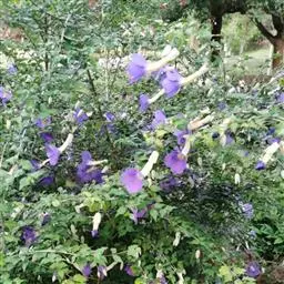 爵床科山牵牛属多年生常绿灌木,植株高2-3米,分枝多,枝条较柔软,幼茎四棱形,绿色至深褐色。蓝吊钟…