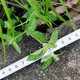 叶柄具翼,长1.5-3厘米,被疏柔毛;叶片卵状箭头形或卵状稍戟形,长2-7.5厘米,宽2-6厘米,先端锐尖,基部箭形或稍戟形,边缘具2-3短齿或全缘,两面被稀疏柔毛间糙硬毛,背面稍密;脉掌状5出,主肋具1-2侧脉。