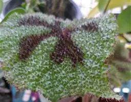 铁十字秋海棠(学名:Begonia masoniana Irmsch. )是秋海棠科秋海棠属植物,年生草本,根茎横卧,肉质;叶具长柄,通常1片,密被粗、褐色卷曲硬毛,均基生。花葶高38-54厘米,有棱,近顶端有极疏长毛;花多数,黄绿色顶生,4-5回圆锥状二歧聚伞花序;花期5-7月,果期9月开。