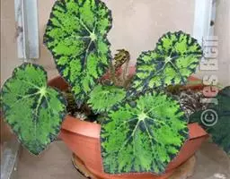 选择长势优良、无病虫害的健康花卉进行分株。将所要进行分株的花卉即铁十字秋海棠取出,而后切开母株的根状茎,使每份被分离的茎段带有3或4片叶,分别置于新盆中即可。操作过程应谨慎小心,避免叶片的折损;在切口处涂抹适量的草木灰可以防止伤口腐烂,提高成活率。
