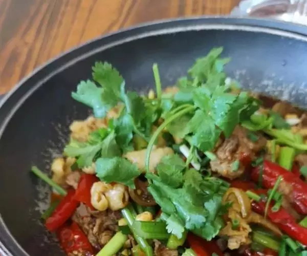 材料:鸡杂碎,泡椒,泡姜,葱,油,老抽,料酒。