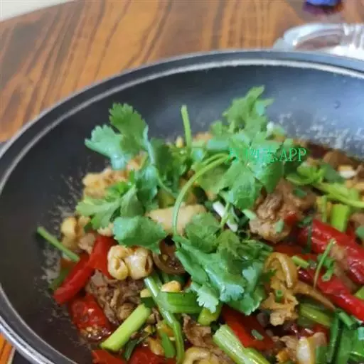 4.炒锅置于大火上,倒植物油热至9成下鸡杂,快炒3-5分钟,下香芹和味精调味再炒1分钟即可装盘上桌。