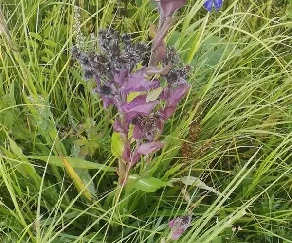紫苞雪莲(学名:Saussurea iodostegia Hance)为菊科、风毛菊属植物。生于山坡草地、山地草甸、林缘、盐沼泽,海拔1750-3300米。