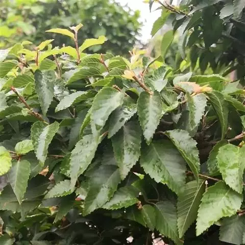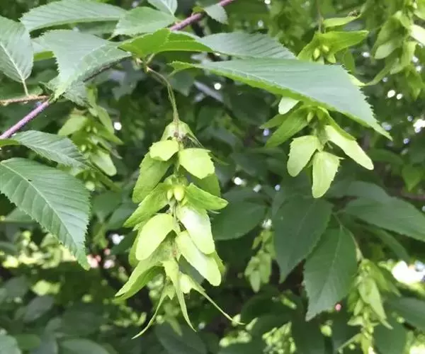 乔木,高10-20米;树皮深灰色;小枝棕褐色,密生白色皮孔,无毛。叶厚纸质,椭圆形、矩圆形、卵状披针形,长6-11厘米,宽3-5厘米,顶端渐尖、尾状渐尖至长尾状,基部圆楔形、圆形兼有微心形,有时两侧略不等,边缘具规则或不规则的重锯齿,除背面沿脉疏被长柔毛及有时脉腋间具稀少的髯毛外,均无毛,侧脉12-15对;叶柄较细长,长(10-)15-30毫米,多数无毛,偶有稀疏长柔毛或短柔毛。果序长5-15厘米,直径2.5-3厘米,下垂;序梗疏被短柔毛;序轴纤细,长1.5-4厘米,无毛;果苞长1.5-2.5(-3)厘米,内外侧基部均具裂片,近无毛;中裂片半卵状披针形至矩圆形,长1-2厘米,内侧边缘全缘,很少具疏细齿,直或微作镰形弯曲,外侧边缘具齿牙状粗齿,较少具不明显的波状齿,内侧基部的裂片卵形,长约3毫米,外侧基部的裂片与之近相等或较小而呈齿裂状。小坚果宽卵圆形,长3-4毫米,无毛,有时上部疏生小树脂腺体和细柔毛,具少数细肋。 [1-3]