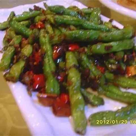 干煸豆角是用四季豆制作作为主要食材,以酱油、香油、味精、醋作为调料制作而成的一道家常菜。口味咸香辣,…