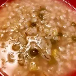 主料:紫米50g、大米50g、赤小豆20g、绿豆20g、核桃4个;