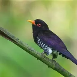 紫金鹃是一种羽色艳丽的小形杜鹃,体长约17厘米。雄鸟头、颈、胸和上体辉紫色,腹白色,…