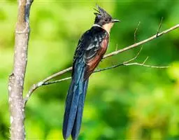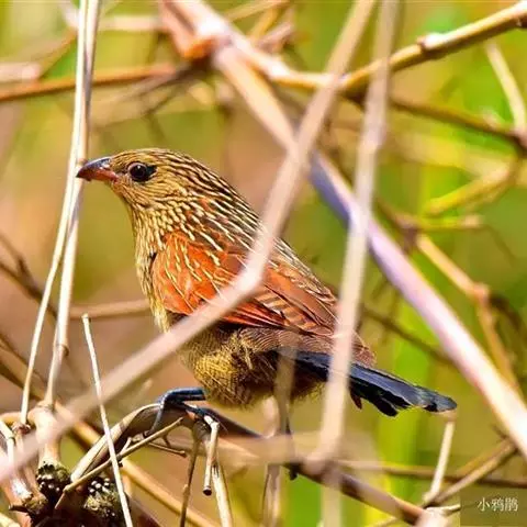 小鸦鹃,是杜鹃科、鸦鹃属的中型鸟类,体长30-40厘米,外形似褐翅鸦鹃,通体黑色,肩和翅栗色,…