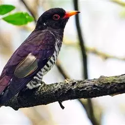 红翅凤头鹃:体长约38厘米,顶冠及凤头黑色,具显眼的直立凤头,背及尾黑色而带蓝色光泽,翅栗红色,…