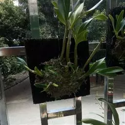 通常选用四壁多孔的塑料或陶瓷花盆,用碳根、泥炭藓、树皮块、木炭块等作盆栽材料。根据兰苗的大小,选择不同规格的花盆,但不宜用大盆栽小苗口上述栽好材料在使用前必需在清水中浸泡1天以上备用。盆底要多垫大瓦片或碎砖块,深度至盆底约1/3处,然后将兰苗放于盆中央,并在一旁插一细竹竿以固定兰苗,再填入其他栽培材料,注意根与根之间用材料隔开。