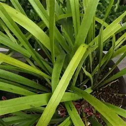 叶型有细叶、中宽叶、宽叶等;以细叶及中宽叶为多见,半垂形,叶缘有细锯齿;叶4~6片丛生,线型,长30~40cm,宽0.3~1cm左右,3~4片叶鞘紧抱有力,长势厚实,优美飘逸;尚有叶艺、奇叶、矮种等;