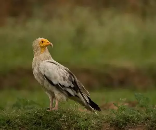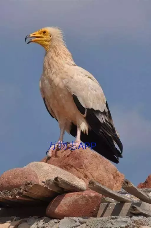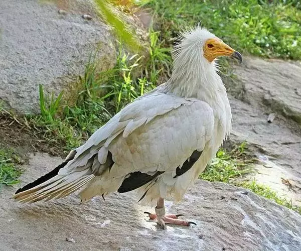 白兀鹫(学名:Neophron percnopterus):也叫法老之鸡,在南亚这一物种被称为清道夫秃鹰。体长58–70厘米,翼展155–170厘米,体重1.6–2.2千克。成鸟大多是白色到浅灰色的羽毛,与黑色的翼羽和尾羽及裸露的黄色的皮肤形成鲜明对比。有披肩状鬃毛。长而窄的鸟喙基部黄色,喙尖黑色,双翼很尖,当中以第三主羽最长。尾巴短呈楔状。腿是灰白色、粉红色或浅黄色。雏鸟的羽毛比成鸟深的多,有灰棕色、棕色或黑棕色,有黑白色的斑。