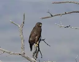 白肩雕:又名御雕,是大型猛禽。体长73-84厘米。体羽黑褐色,头和颈较淡,肩部有明显的白斑,在黑褐…