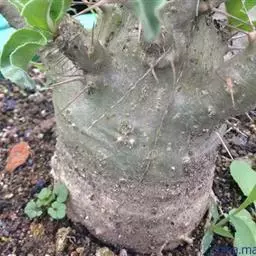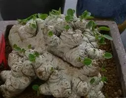 播种:非洲霸王树的种子长约1厘米,宽0.2厘米,呈棒槌状,灰白色。播种时间宜在四五月,播种前,先用温水浸种24小时,播种温度18-25℃最为适宜,湿度95%最佳。播种基质可采用泥炭:珍珠岩:粗沙=8:1:1的比例配制。播种后一般用细泥炭覆盖。非洲霸王树一些种子播种后3-5天后可发芽,但有些种子需要5-6个月。刚出芽的小苗应遮荫50%,半个月后即可进行全日照管理,小苗期间苗士应保持湿润和通气。出苗后1个月,视长势情况,其进行炼苗处理,以增强抗性。