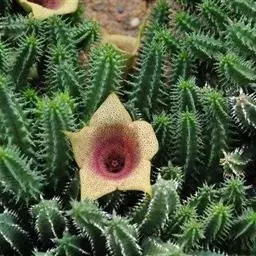 非洲霸王树原产非洲马达加斯加岛西南部的热带地区。性喜温暖、干热和阳光充足的环境,但能半萌,生长适温为20-25℃,冬季室温应不低于15℃,若夏季温度超过35℃,叶片易枯黄睨落,冬季气温低于10℃以下,易受冷害和冻害。 非洲霸王树