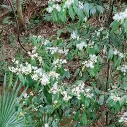 《本草纲目》:“山矾生江、淮、湖、蜀山野中,树高大者高丈许。叶似栀子,光泽坚强,略有齿,凌冬不凋。三月开花,繁白如雪,六出黄蕊,甚芬香。”