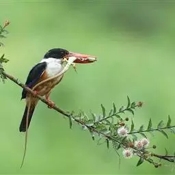白领翡翠:有50个亚种。体长18厘米,体重35-40克。是一种蓝白色翡翠鸟。…