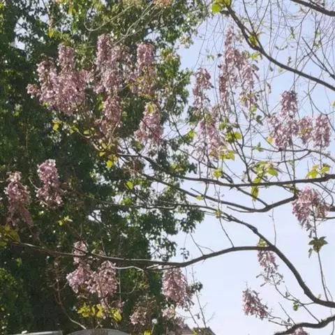 2.毛泡桐,和毛泡桐的主要区别在于:叶全缘或3-5浅裂。花外面通常淡紫色,内面白色,有紫色条纹。花期4-5月,果期8-9月。