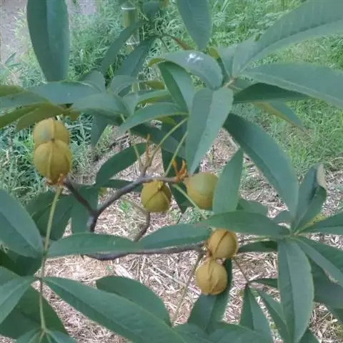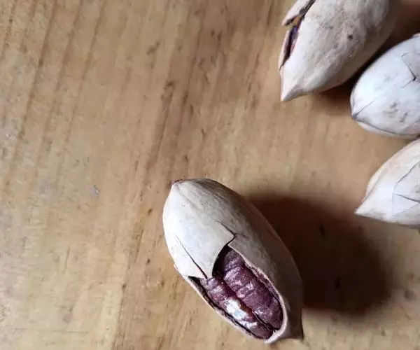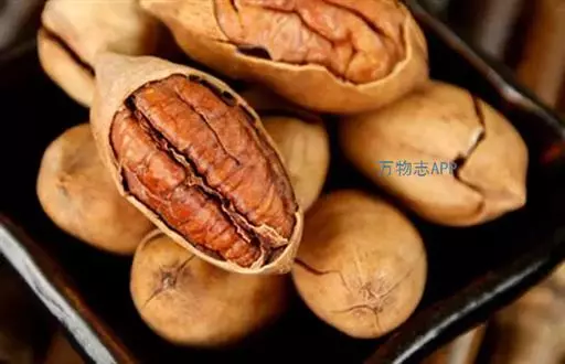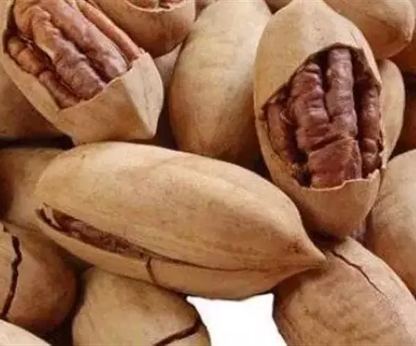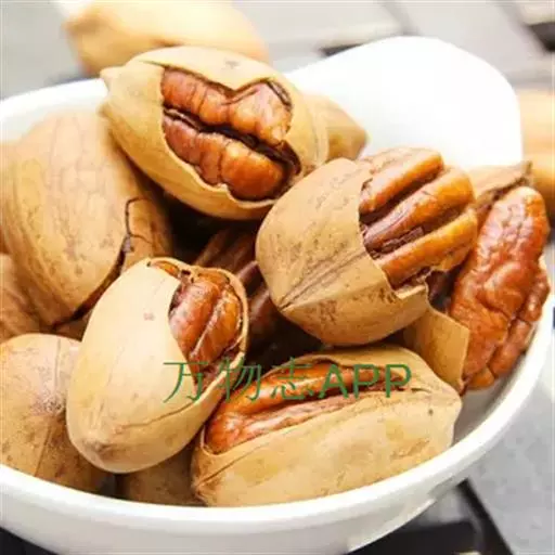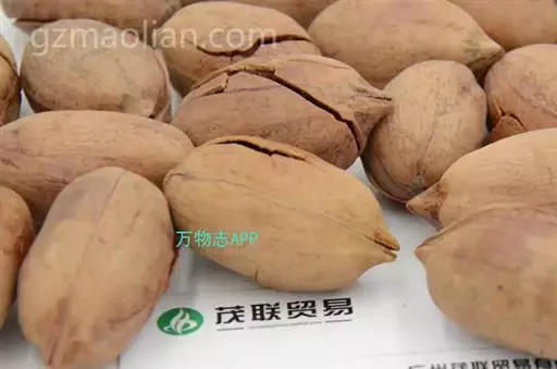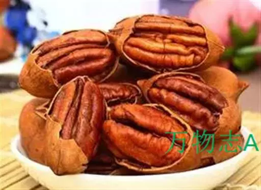 美国山核桃(Carya illinoensis Koch)属胡桃科的山核桃属,又名薄壳山核桃或长山核桃,英文名为Pecan或Hickory,原产北美大陆的美国和墨西哥北部,现已成为世界性的干果类树种之一。由于其种仁有优异的食疗保健价值。比香榧大一号,剥开是像核桃一样的果肉。壳很脆,特别好剥,就跟香榧一样脆,而肉质介于大核桃与小核桃之间。