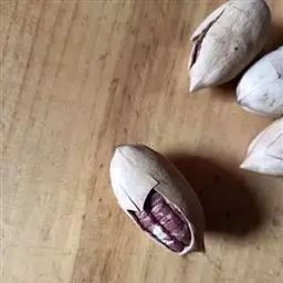 优质碧根果皮很薄,可以用手剥开,果仁的味道界于我们常吃的山核桃和大核桃之间,口感香浓酥脆令人赞不绝口。