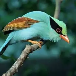 蓝绿鹊:中型鸟类,共有5个亚种。体长36-38厘米。尾长,嘴、脚红色。通体羽色主要为草绿色,…