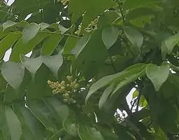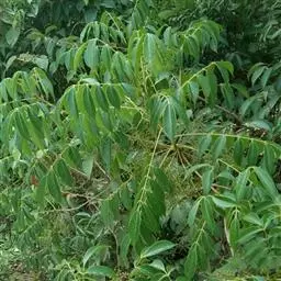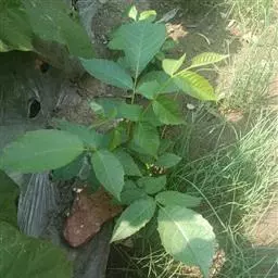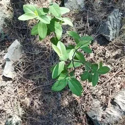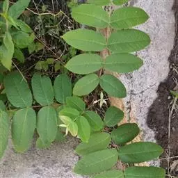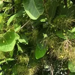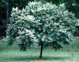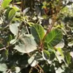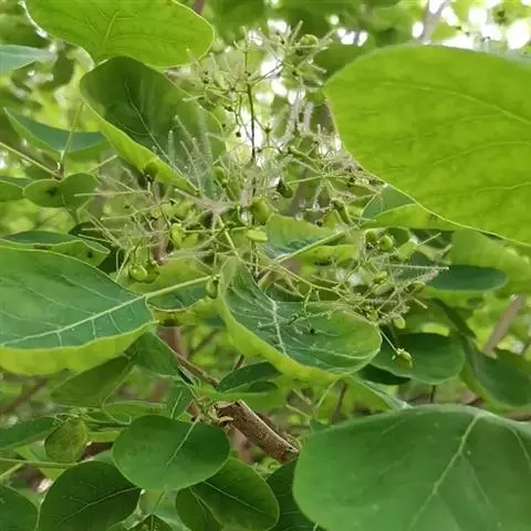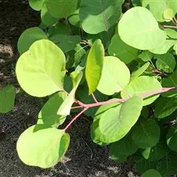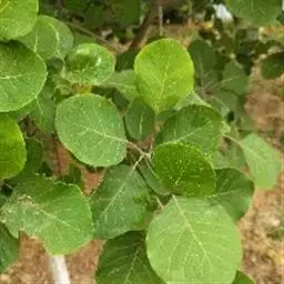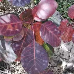粉背黄栌叶卵圆形,较大,长3.5-10厘米,宽2.5-7.5厘米,无毛,但叶背显著被白粉;叶柄较长,…