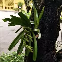大序隔距兰 Garay):茎直立,扁圆柱形,伸长,达20余厘米,通常粗5-8毫米,被叶鞘所包,…