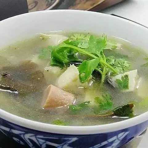 雪菜黄鱼汤,浙江宁波市传统的特色名菜,属于宁波十大名菜之一,此菜汤汁奶白鲜洁,鱼肉鲜嫩,雪菜鲜脆爽…