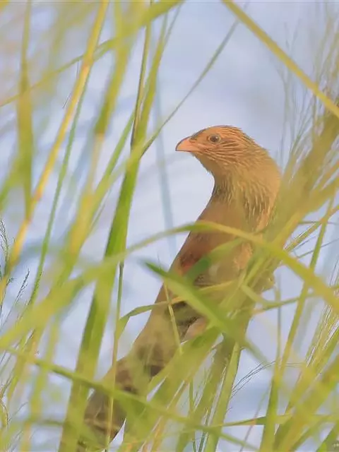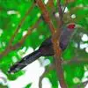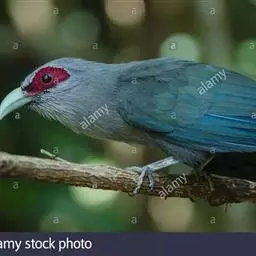 绿嘴地鹃:体形似小鸦鹃,但羽色大致绿灰;嘴绿色,头侧眼的周围有一裸区;后爪弯曲。虹膜赤红色,…