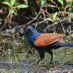 褐翅鸦鹃,是鹃形目鸦鹃科鸦鹃属的鸟类。褐翅鸦鹃的身体为黑色;头颈和胸带蓝紫色金属光泽并具黑亮的羽干纹,…