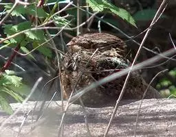 由于脚部力量不足,三声夜鹰不栖息在树上。白天,它不是蹲坐在地上,就是纵躺在大树枝上。