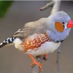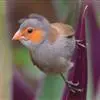 橙颊梅花雀体长约10厘米,头部灰色,两侧有大块橙色区域,嘴基及眼下方有黑纹,两条黑纹间呈白色,…