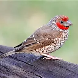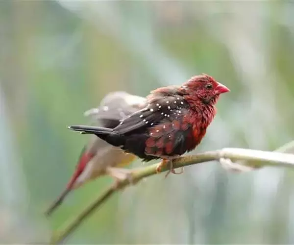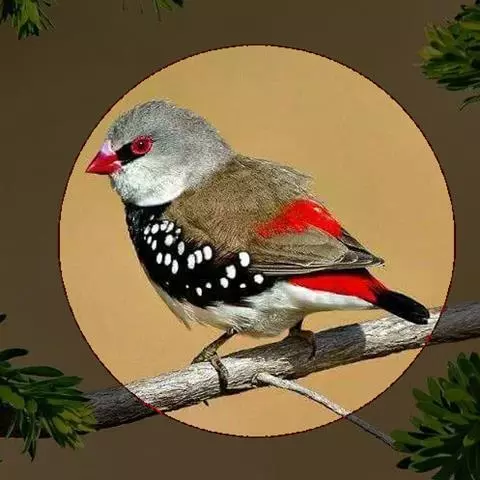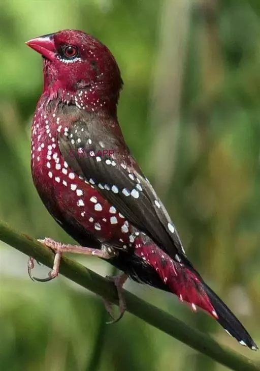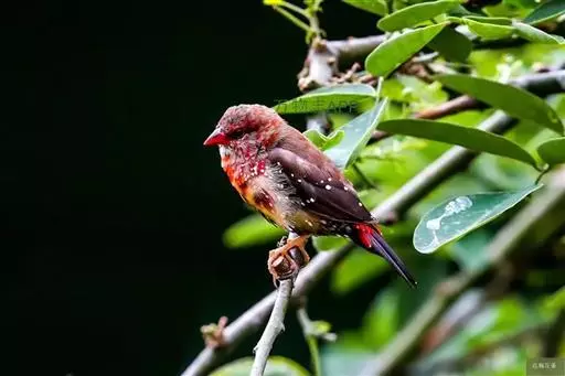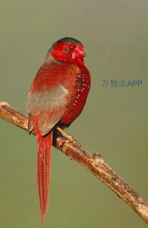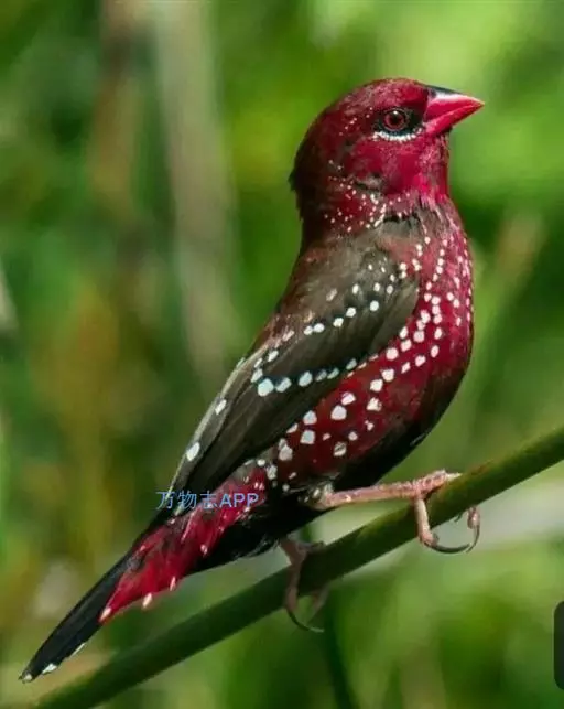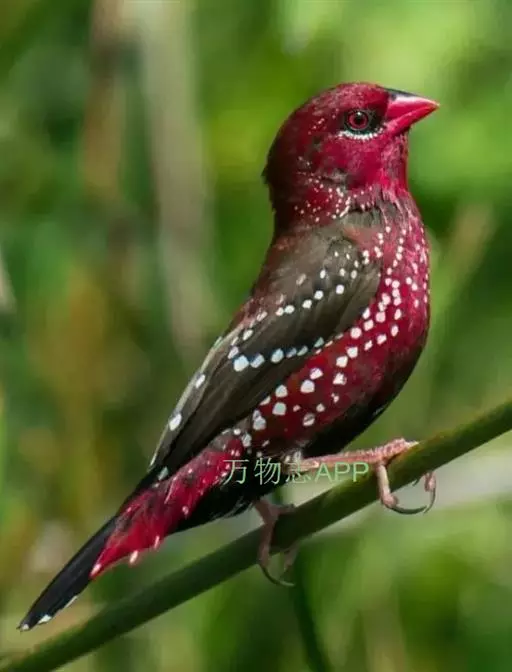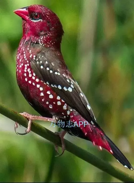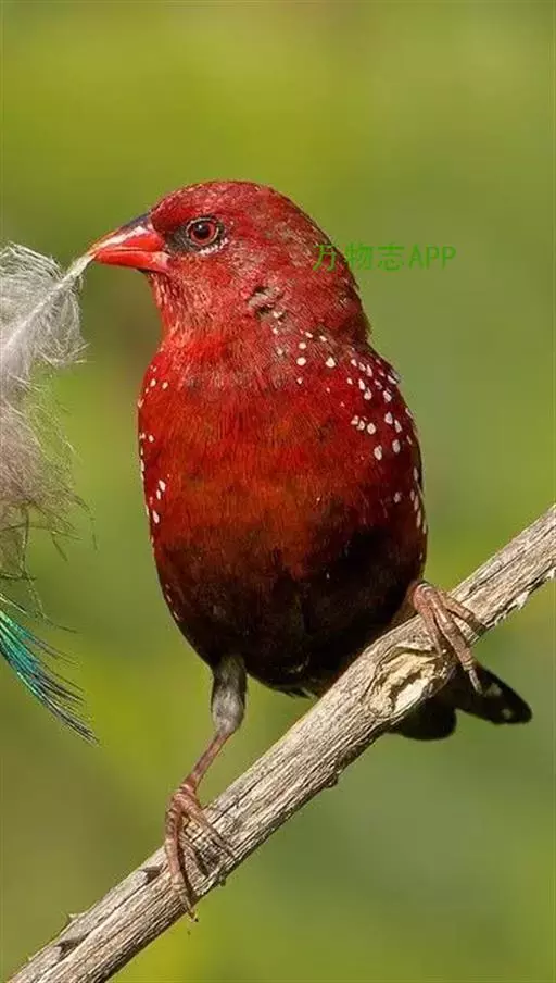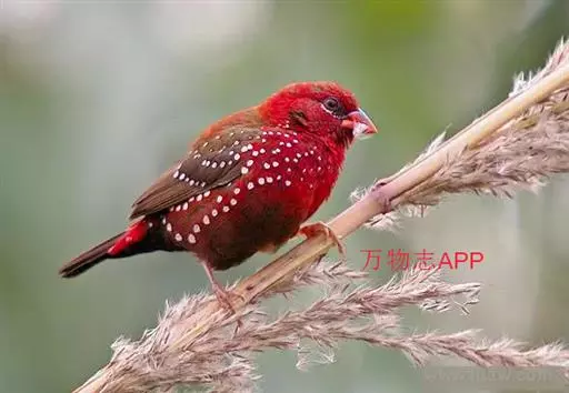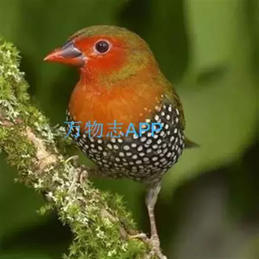红梅花雀(Amandava amandava)小型鸟类,体长9-10厘米。雄鸟通体朱红色,背、肩、胸等满布白色小斑点,两翅和尾黑褐色均具白色端斑,嘴红色,脚蜡黄色。雌鸟上体淡褐色或赭褐色,翅上中覆羽、大覆羽和内侧飞羽末端具白色斑点,尾上覆羽红色,眼先和眼周黑色,其余头侧、颏、喉、胸和两胁灰色,其余下体橙黄色,嘴红色。