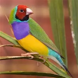 七彩文鸟是梅花雀科、鹦雀属鸟类。头部羽色有黑、红、黄之别。幼鸟体色初期为灰色,下部较淡,…