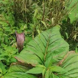 黄苞南星 Schott)是天南星科、天南星属植物,块茎近球形,鳞叶锐尖,叶片鸟足状分裂,…