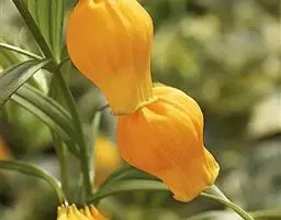 常绿性乔木至小乔木,树冠圆球形,枝条峭立,紧密度中等。树皮浅灰色,皮孔圆或椭圆形,数量中等。标准株分枝力平均2.8个,春梢平均长度为13.4cm,节数平均7.0节/梢;腋芽数平均28.0枚/梢,每节单侧3芽及3芽以上叠生率占58.4%。叶深绿至墨绿色,硬革质、质地厚硬,有光泽;叶身狭长,呈长椭圆状披针形;叶长8.0~13.0cm,平均10.0cm,叶宽2.1~4.0cm,平均3.3cm,长宽比约3.0;叶面内折、中脉深凹;侧脉8~10对、全缘,网脉两面明显;叶缘微波曲、反卷,全缘或中上部有疏尖锯齿;叶身先端长尖、反曲,叶基楔形或宽楔形,叶柄平均长度0.8cm。花期9月下旬至10月上旬;花冠近平展,花冠裂片卵圆形;花色橙黄,国际色卡编号为25A(橙色);香味淡,不结实。