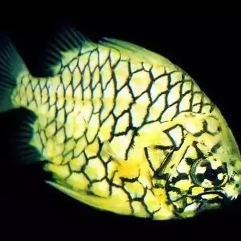 松球鱼为暖水性底层海鱼,因体被大栉鳞、形似松果球而得名。在它头部的发光器官中与其共生着费氏弧菌。当细菌的浓度达到一定程度,便开始发光,便于在黑暗的海洋中寻找并捕食猎物。松球鱼(pinecone fish)又叫凤梨鱼(Pineapple Fish),是金眼鲷目中最漂亮的一种观赏鱼类。
