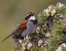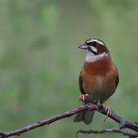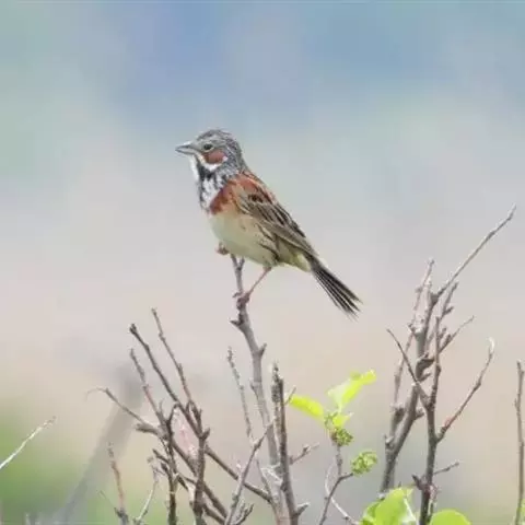 栗斑腹鹀:属小型鸣禽。体重19-25克,体长145-167毫米。头顶至背栗红色,眼先和颧纹黑褐色,…